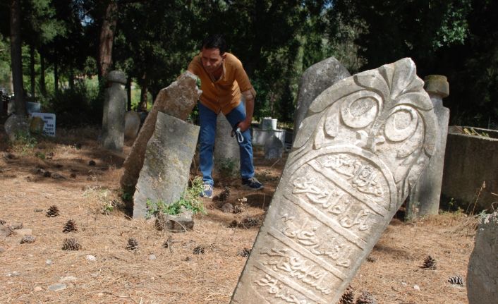 Lütfü Ürkmez Mesleki ve Teknik Anadolu Lisesinde görevi edebiyat öğretmeni Rahim Sağ, üç arkadaşı ile birlikte Kemalpaşa ilçesindeki eski mezar taşlarını inceledi.