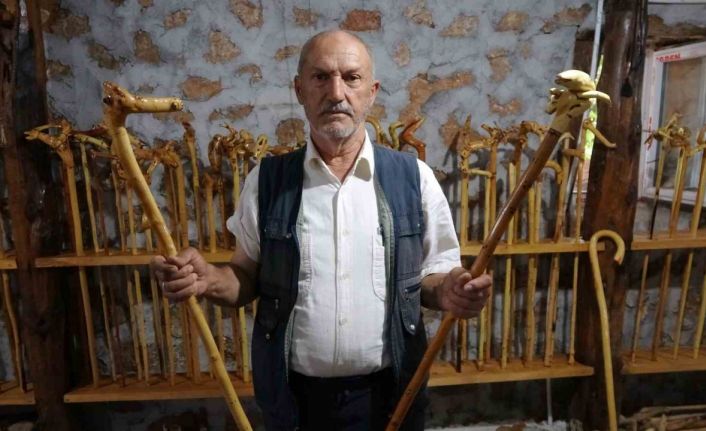 17 yıldır el sanatlarıyla uğraştığını söyleyen Raşit Öztürk, “Emekli olduktan sonra köyüme geldim. 2006 yılından itibaren el sanatlarıyla uğraşıyorum. Ormanlık alanlardan kurumuş ağaç dallarını doğaya zarar vermeden topluyorum. Fındık, meşe, karaağaç, kızılcık ağacı hangisini bulabilirsem onları değerlendiriyorum. Bu ağaçlardan baston, kağnı, abajur, sehpa yapıyorum. Burada 500’ü geçkin eser var” dedi.