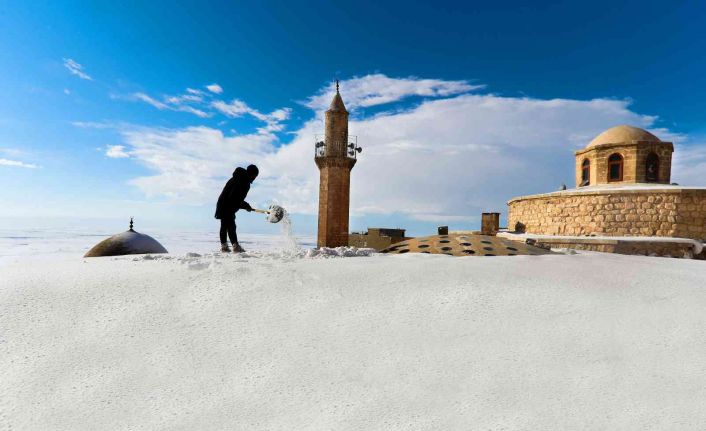 Yer yer karın kalığını yarım metreyi aştığı Mardin’de beyaza bürünen tarihi yapılar, Mezopotamya ovası ve şehirde merkezi kartpostallık görüntüler ortaya çıktı.