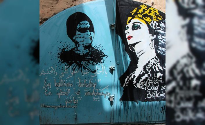 Mardin’de Marangozlar Çarşısının yıllardır kapalı olan ve pas tutan dükkan kapıları boyanıp üzerine çarşının emektarları ile Mardin’in tanınmış isimlerinin resimleri çiziliyor.