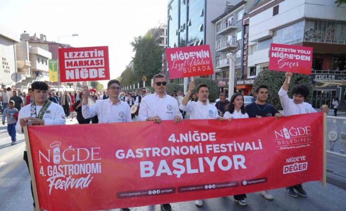 Niğde Belediyesi’nin, yöresel ürünleri ve gastronomi unsurlarının yanı sıra tarihi ve doğal güzelliklerinin, Türkiye’ye ve dünyaya tanıtılması amacıyla bu yıl 4’üncüsünü düzenlediği Niğde 4. Gastronomi Festivali Derbent Meydanından festival alanına yapılan kortej yürüyüşü ile başladı. Saygı duruşu ve İstiklal Marşı’nın okunması ile başlayan açılış töreninde halk oyunu gösterisi sunuldu, Niğde Belediyesi ritim grubu tarafından gösteri yapıldı.
