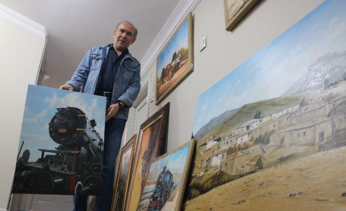 Ressam Arif Sayyar, resimlerinde genellikle meslek hayatında etkilendiği trenleri çalıştığını belirterek, “1975 yılında demir yollarına girdim, 33 yıl çalıştım aralıksız olarak. Resme başlama olayım, çok ilginç. Hikayem çok garip, ilkokul 5.sınıta öğretmenim resim dersinde çalışmamı incelediğinde kulağımı çekti. Bana, ‘Ne kadar yeteneksizsin, okul bitiyor hala resim yapamıyorsun. En yeteneksiz çocuk sensin’ dedi. Bu söylem beni kamçılamıştı, sürekli resim yapmaya başladım. Daha sonra demir yollarına girdim, köy istasyonlarında çok çalıştım. Köy istasyonlarında çalışırken televizyon yoktu, 1975’li yıllarda. Sürekli ya kitap okurdum, yada resim yapardım. Genellikle Anadolu’yu anlatan kitap okurdum. Dolayısıyla da Anadolu insanlarıyla da köylerde çok haşır, neşir oldum. Bu beni çok etkilemişti. Köylülerin yaşam savaşları bende saygı uyandırdı. Dolayısıyla Anadolu köy yaşantısını çalışmaya başladım. Ben çok etkilenmiştim. Resimlerimde genellikle meslek hayatım, olan trenleri çalışmayı çok seviyorum” dedi.
