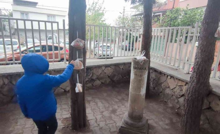 Kahramanmaraş’ta bir ilkokulun bahçesine konulan ve Osmanlı döneminden günümüze gelen "sadaka taşı" uygulaması ile öğrenciler ihtiyaçlarını gideriyor.