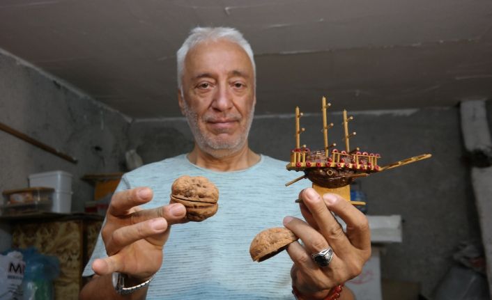 Gemi karinasına benzeterek ilham aldığı ceviz kabuklarından minyatür gemiler yapan Eskişehirli Günay Karakılıç, yaptığı eserlerle ilgi çekiyor.