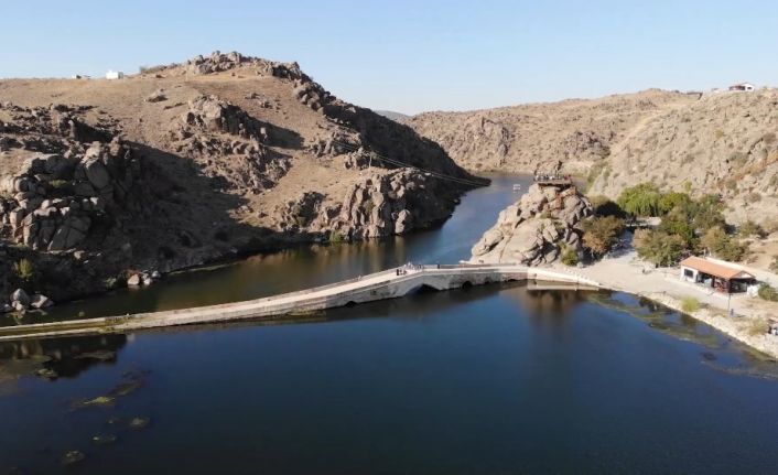 Selçuklulardan günümüze kadar uzanan Tarihi Çeşnigir Köprüsü ve Kanyonu, drone ile havadan görüntülendi.