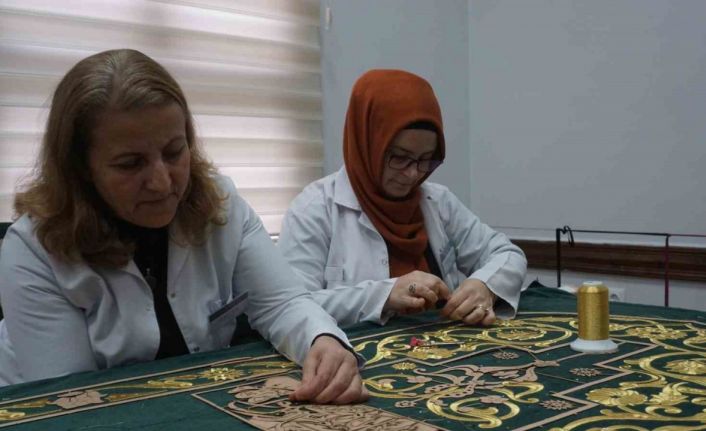 Edirne Olgulaşma Enstitüsü’nde ’Selimiye Camii’nden yansımalar’ teması çerçevesinde sim sırma tekniği kullanılarak caminin minber örtüsünü aslına uygun şekilde yenileniyor.