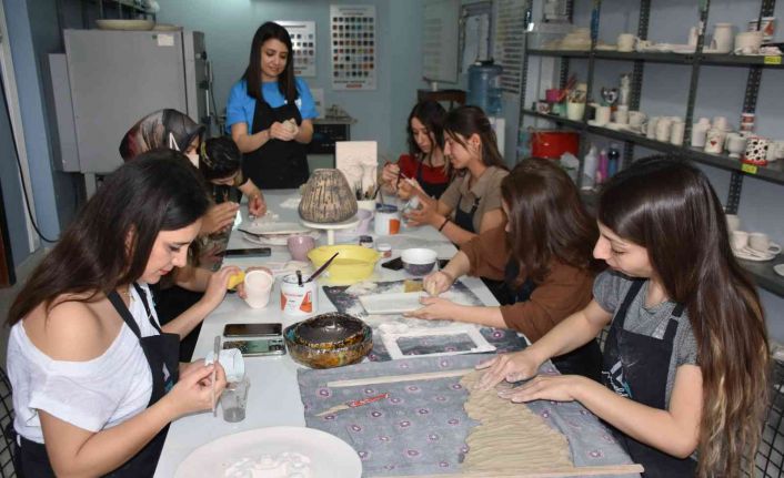 Seramik atölyesinde kursa gelen Gülbahar Yeşil, “Seramik atölyesi kursuna üç aydır başladım, hayatımda aldığım en doğru karar bu oldu. Yoğun bir tempo ile çalışıyordum ve enerjimi atacağım bir yer arıyordum. Buraya ürün almak için geldim ve gördüğüm atmosfer beni çok mutlu etti. Öğrencilerin çalışmalarından esinlenerek, ani bir karar ile hemen hafta sonu kursa başladım. Beni aşırı mutlu ediyor burası” ifadelerini kullandı.