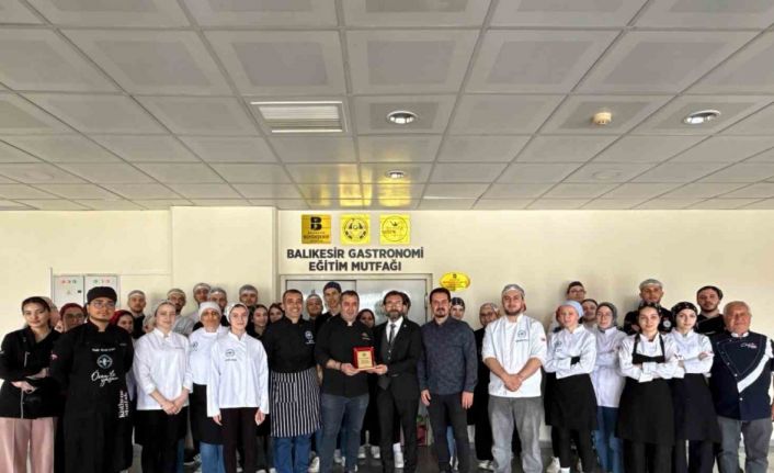 Balıkesir Gastronomi Eğitim Mutfağı’nda gerçekleşen etkinlikte, kokorecin hazırlanma sürecini uygulamalı olarak anlatan Erdal Aslanboğa, ürünün sarım ve pişirme tekniklerini öğrencilerle birlikte gerçekleştirdi.