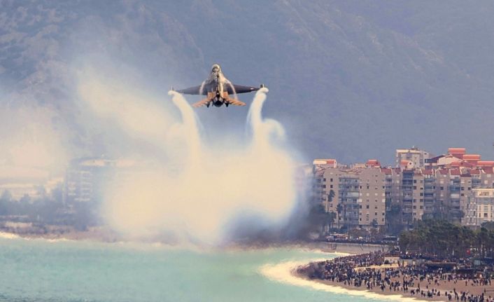 Türk Hava Kuvvetlerinin akrobasi ekibi SOLOTÜRK, Antalya’da 23 Nisan Ulusal Egemenlik ve Çocuk Bayramı kutlamaları kapsamında gerçekleştirdiği gösteriyle binlerce vatandaşı bir araya getirdi. Türkiye Büyük Millet Meclisi’nin açılışının 106’ncı yıl dönümü ve 23 Nisan Ulusal Egemenlik ve Çocuk Bayramı dolayısıyla düzenlenen etkinlikler kapsamında, Türk Hava Kuvvetleri F-16 Akrobasi Timi SOLOTÜRK Antalya semalarında uçuş gerçekleştirdi. Konyaaltı Sahili ile Olbia Kent Meydanı’ndan izlenen gösteri, alanı dolduran vatandaşlara heyecan dolu anlar yaşattı.