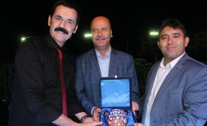 Şuhut Belediye Başkanı Recep Bozkurt tarafından ses sanatçısı Ramazan Çelik’e plaket takdim edildi.