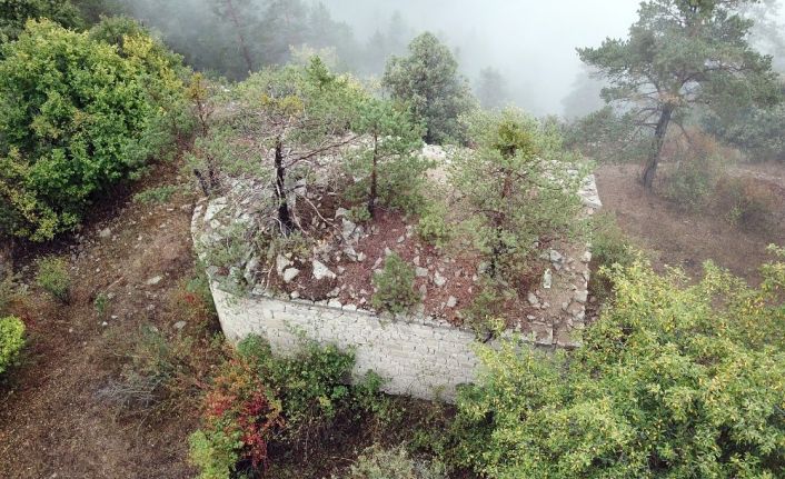 Gümüşhane’de tarihi Ayvalos Kilisesi’nin çatısında kendiliğinden büyüyen çam ağaçları görenlerin dikkatini çekiyor.