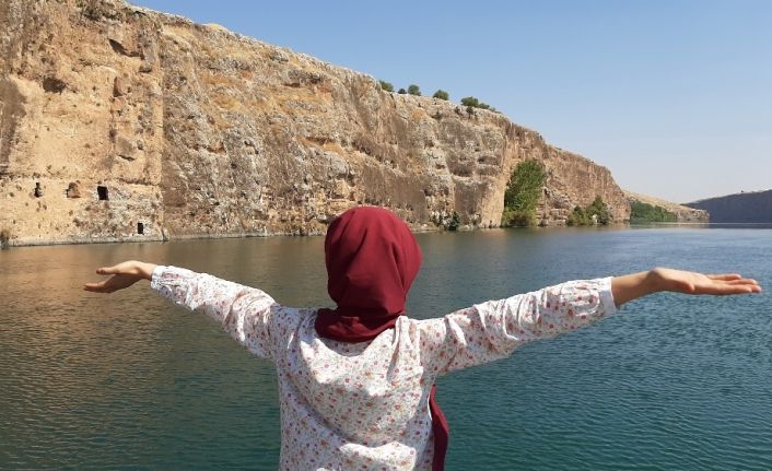 Halfeti’ye rakip olan Fırat Nehri üzerindeki bin 800 yıllık tarihi Kızılin mağaralarına turistler tekne ile ulaşıyor.