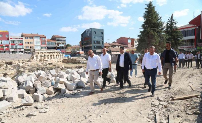 Sarıkaya ilçesinde tarihi 2 bin yıl öncesine dayanan ve 2018 yılında UNESCO Dünya Mirası Geçici Listesi’ne alınan ‘Kral Kızı’ adıyla da bilinen Basilica Therma Roma Hamamı’nın çevre düzenlemesi sürüyor. Yaklaşık 3 aydır Roma Hamamında devam eden çalışmaları yerinde inceleyip yetkililerden bilgi alan Yozgat Valisi Ziya Polat’a MHP Yozgat Milletvekili İbrahim Ethem Sedef, İl Özel İdaresi Genel Sekreteri Nazif Yılmaz ve Sarıkaya Belediye Başkanı Ömer Açıkel de eşlik etti.