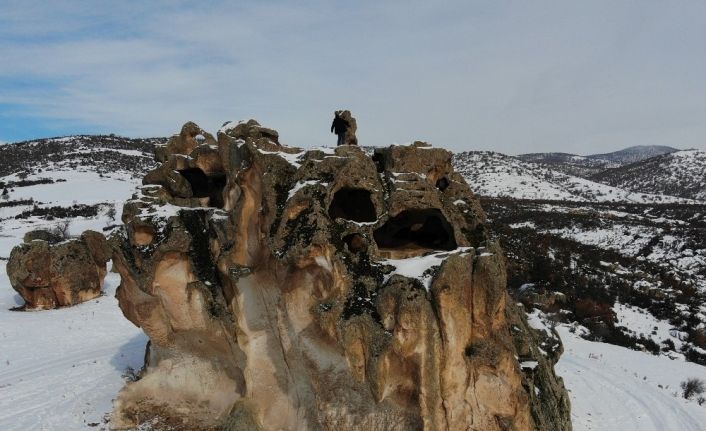 3 bin yıllık geçmişe sahip Frig Vadisi’nde tüf kayaya oyularak yapılan 5 katlı Avdalaz Kalesi, mimari yapısı ile dikkat çekiyor. Yaklaşık 30 metre yüksekliğindeki kale İhlas Haber Ajansı (İHA) tarafından drone ile havadan görüntülenirken, eşsiz güzelliği ile görenleri mest ediyor.