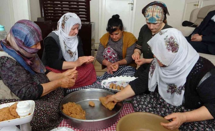 Malatya’nın Doğanşehir ilçesinde bir araya gelen ev hanımları yaptıkları yöreye ait coğrafi işaretli içli köfte eşliğinde hem sohbet ediyor hem de bir kültürü yaşatıyor.