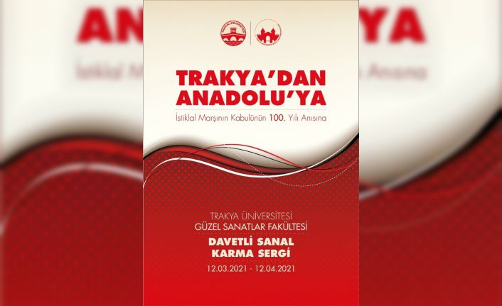Trakya Üniversitesi Güzel Sanatlar Fakültesi, İstiklâl Marşı’nın 100. yılını “Trakya’dan Anadolu’ya” isimli sanal karma sergi ile kutlayacak. İstiklâl Marşı’nın ve Türk milletinin bağımsızlık mücadelesinin anlamını ve önemini hatırlatmak amacıyla düzenlenecek sergi, 12 Mart’ta Trakya Üniversitesi ve Güzel Sanatlar Fakültesi’nin dijital platformlarında izleyicilerin beğenisine sunulacak.