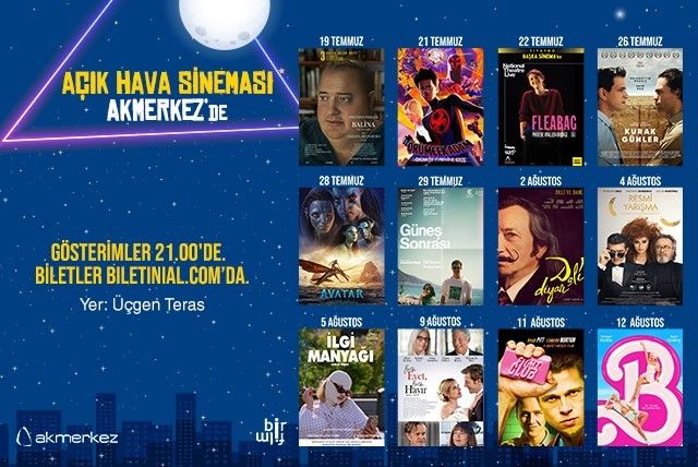 Geleneksel Akmerkez açık hava sineması 19 Temmuz - 12 Ağustos tarihleri arasında her Çarşamba, Cuma ve Cumartesi günleri saat 21.00’da gerçekleştirilecek. BirFilm iş birliğiyle özel seçki filmler sinemaseverlerle buluşacak.