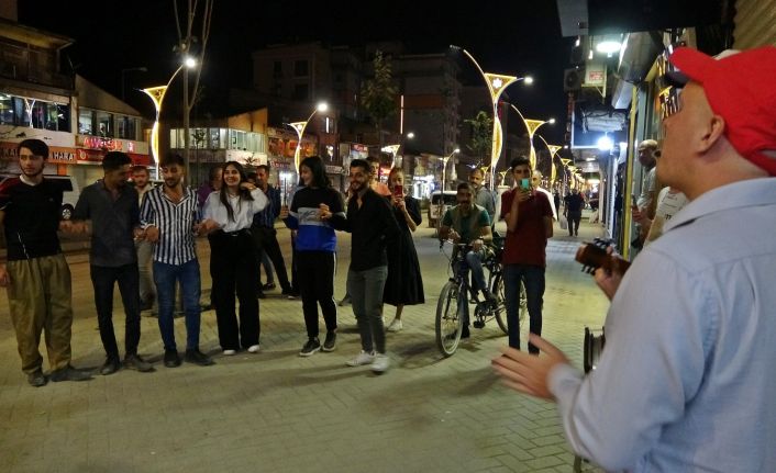 Hakkari’nin Yüksekova ilçesine gelen 2 Ukraynalı turistin, Cengiz Topel Caddesi üzerinde şarkı söylemesini fırsat bilen vatandaşlar halay çekerek yabancı turistlere eşlik ettiler.