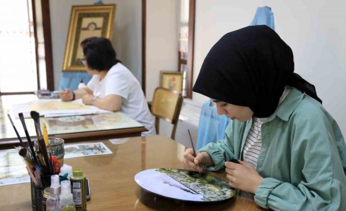 Adana Olgunlaşma Enstitüsü Sanat Tasarım Atölyesinde, unutulmaya yüz tutmuş rölyef, hat, tezhip, resim sanatları birleştirilerek yapılan eserler dikkat çekiyor.