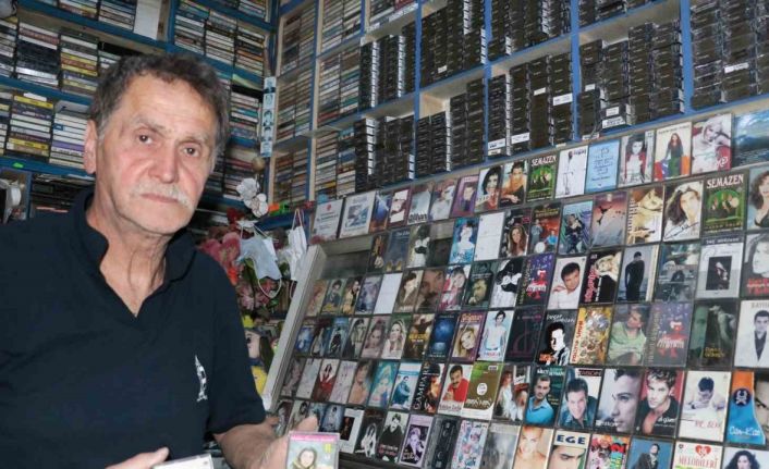 Kahramanmaraş’ta yıllardır küçük dükkanında kasetçilik yapan vatandaş, sanatçıların eserlerinin bulunduğu orijinal müzik kasetlere gözü gibi bakıyor.
