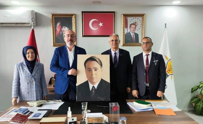 Kütahya Yüzüncü Yıl Tarih Kültür Sanat ve Fotoğraf Derneği Başkanı Yaşar Saygılı, AK Parti Kütahya İl Başkanı Mustafa Önsay’ı ziyaret ederek, merhum Başbakan Adnan Menderes’in gençlik portresini hediye etti.