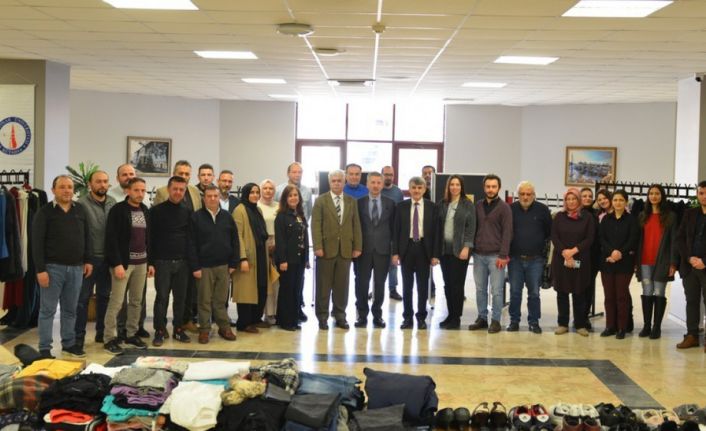 Kütahya Dumlupınar Üniversitesinin (DPÜ) Giysibank projesine destek için toplanan giyim malzemelerinin teslimi için tören düzenlendi.
