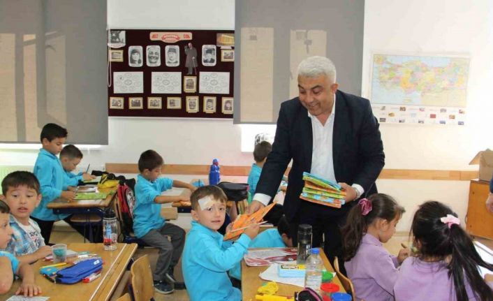 Başkan Fatih Çalışkan, İlköğretim Haftası nedeniyle düzenlenen törenin ardından Kaymakam İsmail Tosun ve İlçe Milli Eğitim Müdürü İlhan Cebeci ile birlikte ilçe merkezindeki okulları ziyaret ederek ana sınıfı öğrencilerine boyama kitabı, kalem seti, silgi ve kalemtıraş, 1.Sınıf öğrencilerine ise defter ve kalem seti hediye etti.