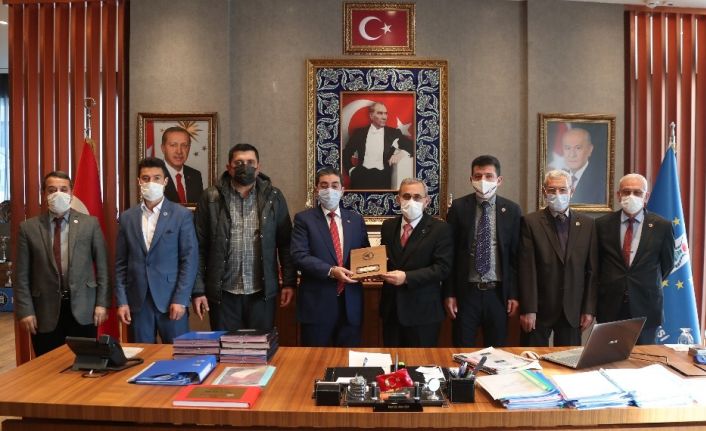 Kütahya Muhtarlar Derneği Başkanı Kadir Mandal ve yönetimi, Belediye Başkanı Alim Işık’ı makamında ziyaret etti. Ziyarette başkan Mandal, Belediye Başkanı Işık’a, yaptığı hizmetlerden dolayı teşekkür plaketi verdi.