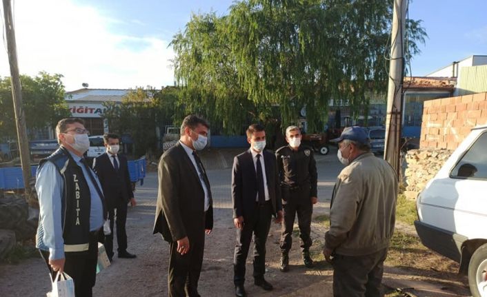 Kütahya’nın Aslanapa ilçesinde Korona virüs denetimleri yapıldı ve belediye tarafından esnaflara maske ve dezenfektan dağıtıldı.