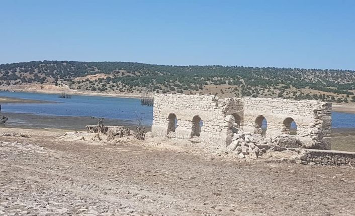 Beşkarış barajında, su seviyesinin aşırı düşmesiyle sular altında olan okul ve camii ortaya açıktı.
