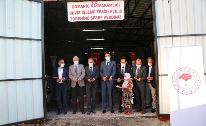 Kütahya İl Tarım ve Orman Müdürlüğünün projelendirdiği Domaniç ilçesindeki ceviz soyma, kurutma ve kalibre etme tesisinin açılışı protokolün katılımı gerçekleştirildi.