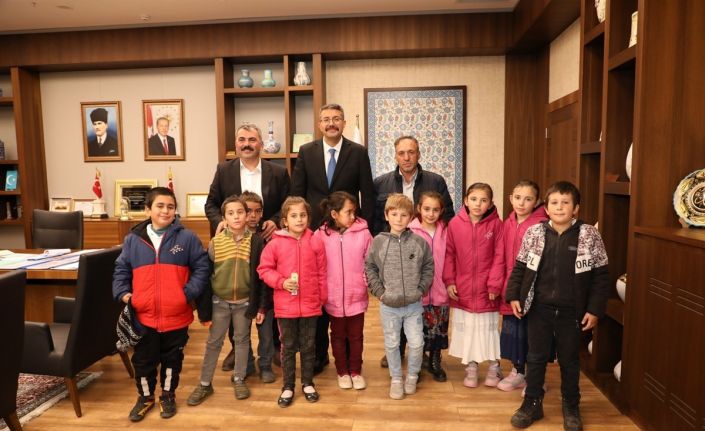 Valilik Toplantı Salonunda gerçekleşen ziyarette çocuklara köy muhtarı Muzaffer Doymaz eşlik etti.
