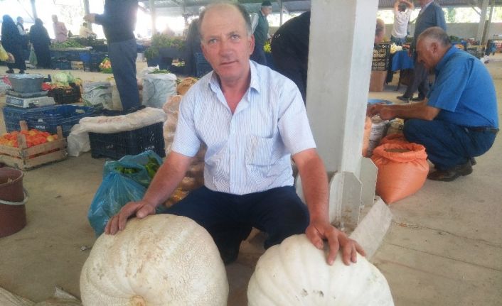 Kütahya’nın Hisarcık ilçesinde Fahrettin Demir isimli üretici, yetiştirdiği ve 20-25 kilo arasındaki bal kabaklarını pazarda satmakta zorlanıyor.