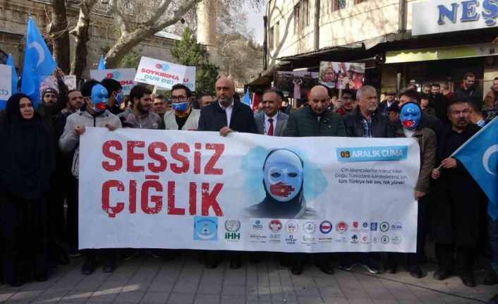 Kütahya’da İHH İnsani Yardım Derneği’nin organizasyonu ile bir araya gelen STK temsilcileri, Çin’in Doğu Türkistan politikasını protesto etti.