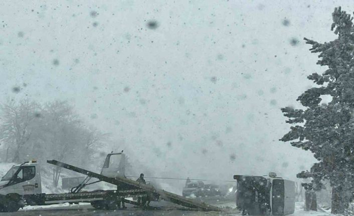Kar yağışının etkili olduğu Domaniç-İnegöl yolu Kocayayla Orman Deposu yakınlarında bir ticari araç, sürücüsünün kontrolünü kaybetmesi sonucu devrildi. Kazanın ardından olay yerine yönlendirilen ekipler, bölgedeki trafiğin güvenliğini sağladı.