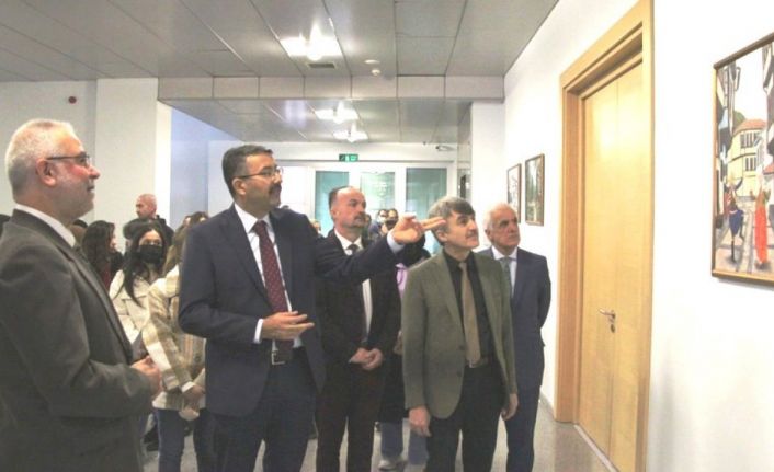 Sergiyi gezen Vali Çelik ve Rektör Uysal, sergilenen resimlerle ilgili Dekan Prof. Dr. Mercin ile öğrencilerden bilgi aldılar. Resimleri inceledikten sonra öğrencilerle sohbet eden Çelik ve Uysal, öğrencileri çalışmalarından dolayı kutladılar.