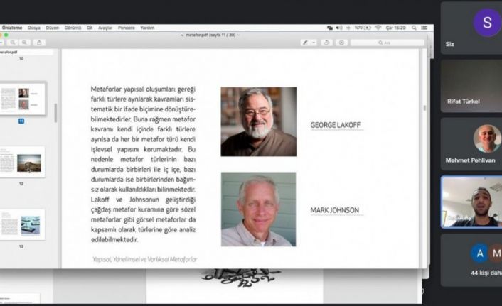 Çevrim içi ortamda düzenlenen ve Arş. Gör. Dr. Resul Ay’ın konuşmacı olarak katıldığı seminerinde görsel metaforların görsel iletişimdeki yeri, hangi amaçlar ile kullanıldığı, görsel metafor türleri ve uluslararası tasarımcıların görsel metaforları nasıl geliştirdiklerini ele alan bir sunum gerçekleştirildi.