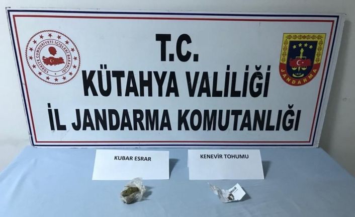 İl Jandarma Komutanlığı ve Merkez İlçe Jandarma Komutanlığı ekipleri K.Y. isimli şahsın Eskişehir’den temin ettiği uyuşturucu maddeyi Kütahya getireceği bilgisine ulaştı. Bahse konu şahıs Merkez ilçe Akpınar köyü-Sabuncupınar köyü yolu üzerinde yaya halde giderken durduruldu. Şahsın üzerinde yapılan aramada, 22 gram kubar esrar ve 2 gram kenevir tohumu ele geçirildi.