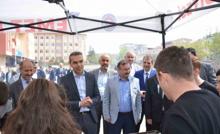 Okul bahçesindeki çarşı alanını ziyaret eden Emet Kaymakamı Hasan Çiçek ve Emet Belediye Başkanı Hüseyin Doğan gıda satışı yapılan stantları gezdi.