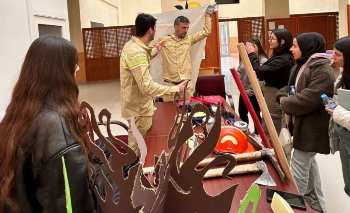 Emet Meslek Yüksekokulu Çocuk Gelişimi Programı öğrencileri tarafından Okul Öncesi Eğitim Kurumlarında Uygulama dersi çerçevesinde düzenlenen "Alevlerin Ardında" başlıklı farkındalık etkinliğine, Emet Orman İşletme Müdürlüğü’nde görevli Orman Muhafaza Memurları Selim Can Özçelik ve Yaşar Gök katıldı. Meslek Yüksekokulu fuaye alanında açılan stantta, yangınla mücadelede kullanılan araçlar sergilendi. Yangınla mücadeleye dair farkındalığı artırmayı hedefleyen etkinlik yoğun ilgi gördü. Katılımcılar, yangınla nasıl mücadele edildiği, hangi araçların kullanıldığı ve yangınları önleme konusunda detaylı bilgi alma fırsatı buldu.