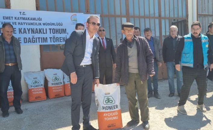 Tohum dağıtım törenine Emet Kaymakamı Hasan Çiçek, Belediye Başkan Yardımcısı S. Sami Demirsöz, Ziraat Odası Başkanı Ahmet Ünlü, İlçe Tarım ve Orman Müdürü Alper Kızılçay ile tohum teslim alacak çiftçiler katıldı.