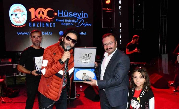 Konser sonrasında Belediye Başkanı Hüseyin Doğan tarafından İsmail YK’ya yöresel Emet keçi peyniri ve heybe hediye edildi.
