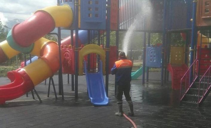 Kütahya’nın Gediz Belediyesi Temizlik İşleri Müdürlüğü tarafından Adnan Menderes Yaşam Parkı’nda kapsamlı dezenfekte çalışmaları gerçekleşti.