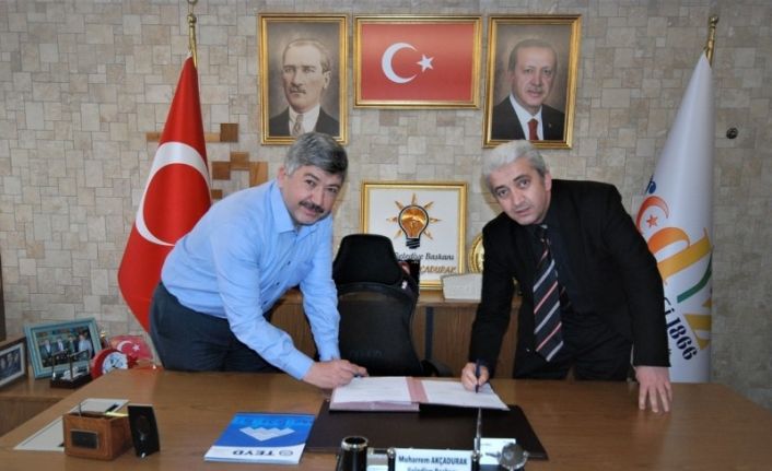 Başkanlık makamında gerçekleşen protokol Gediz Belediye Başkanı Muharrem Akçadurak ve İlçe Tapu Müdürü Salih Çekildaş arasında imzalandı.