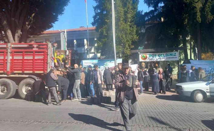 Orman İşletme Müdürlüğü önünde bin 800 fidan dağıtılırken, toplamda 15 bin adet ağaç fidanı dağıtıldı.
