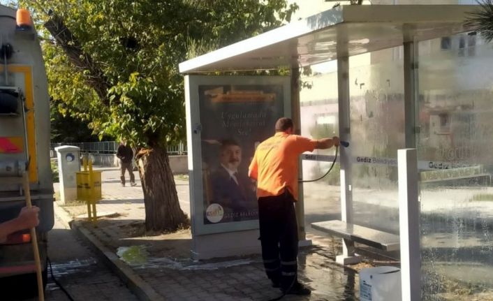 Kütahya’nın Gediz ilçesinde Belediye Temizlik İşleri Müdürlüğü ekipleri, tarafından ilçe genelinde vatandaşların ortak kullanım alanlarından olan otobüs duraklarında, temizlik ve dezenfeksiyon çalışmaları aralıksız devam ediyor.