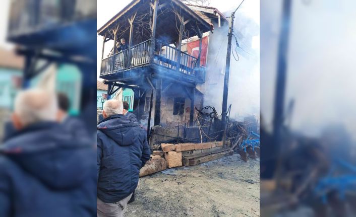 Kütahya’nın Gediz İlçesinde bir evde çıkan yangında samanlık, traktör ve araba yanarak kullanılamaz hale geldi.