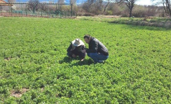 İlçe Tarım ve Orman Müdürlüğü Teknik Personeli tarafından Muhipler Mahallesinde yoncada ilk biçimde zarara sebep olan hortumlu böcek zararlısı ile mücadele hakkında bilgilendirme yapıldı.