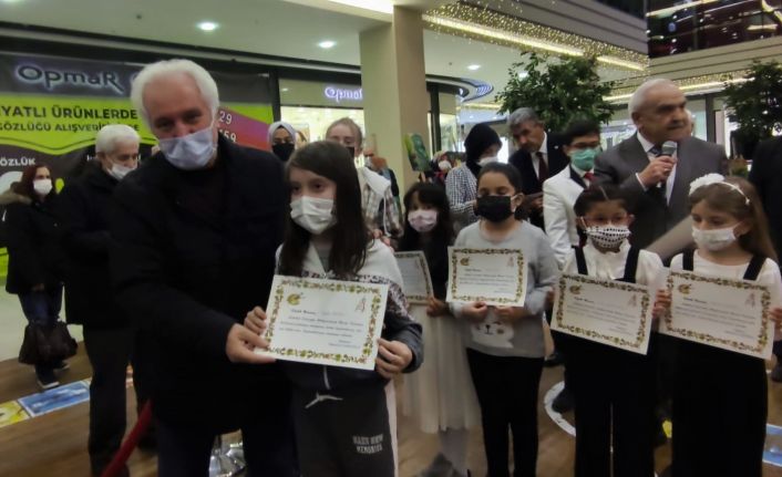 Geleceğin ressamlarının sertifikaları, sergiye katılan protokol mensuplarınca takdim edildi.