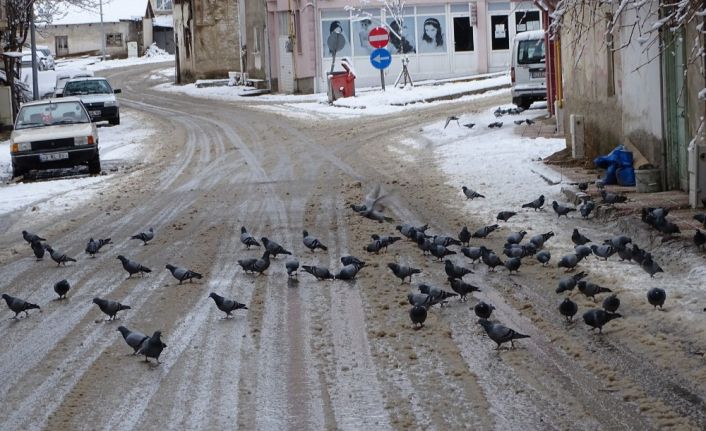 İlçe merkezine bu yılın ilk karın yağmasıyla birlikte sıcaklığın sıfırın altına düşmesi insanlar kadar hayvanları da olumsuz yönde etkiledi. Binalarının çatılarında aç bekleyen sürüler halindeki güvercinler ilçe halkının evlerin balkonlarına, yollara ve pencere kenarlarına attıkları arpa, buğday ve ekmek kırıntılarını yemek için birbirleriyle adeta yarışıyorlar.